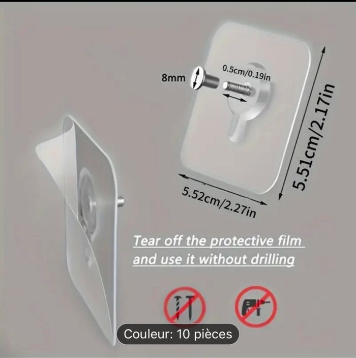 #rangement Lot de 10 crochets adhésif multi usage Dimensions dernière photo