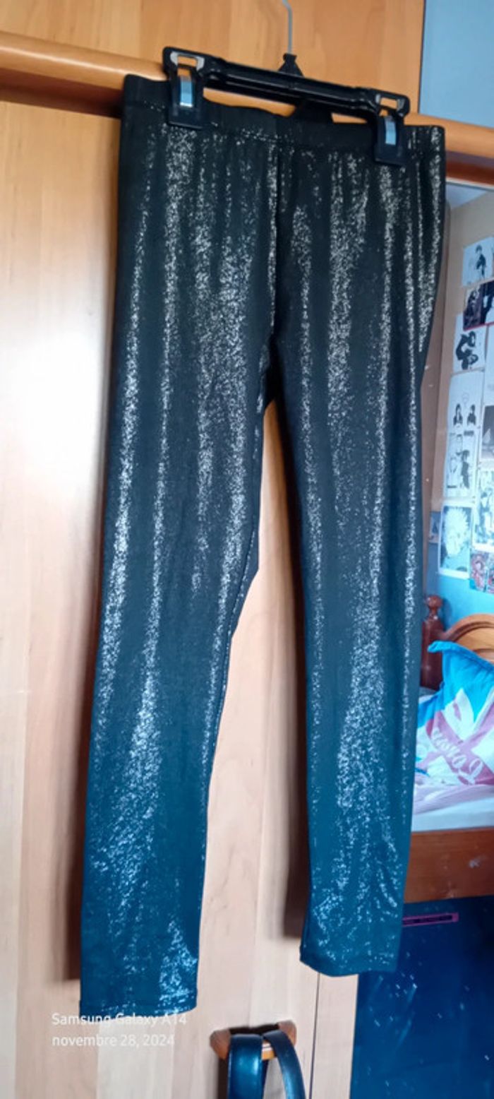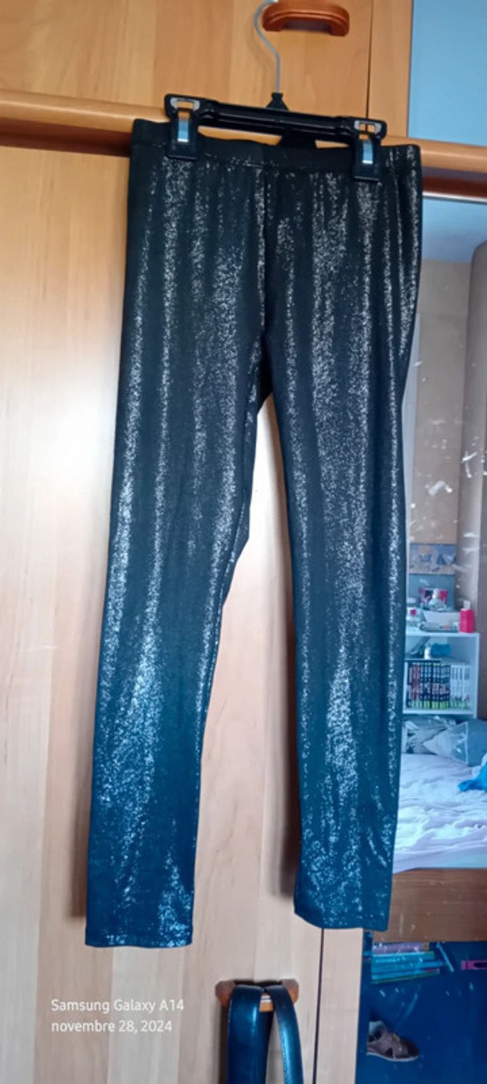 Leggings en polyester et elastanne coupe slim taille basse élastique longueur 72 cm largeur cuisses 15 cm largeur bas de jambe 9 cm ideal pour les fêtes très peu porté en très bon état #midolefille ##midole #midolefille10ans #midoleenfant #leggingsfille10ans #leggingsargenté #leggingsdefetes #leggingsbrillant #fille10ans #nky