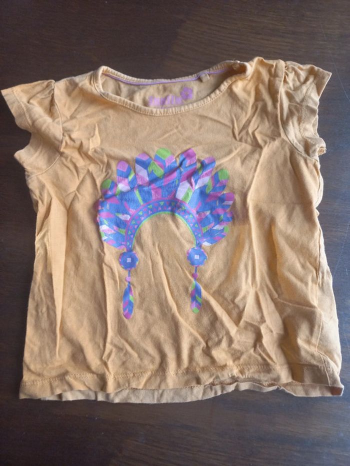 Joli t-shirt orange avec une coiffe indienne dans les tons violet Lupilu 4ans Lot possible :-5% à partir 3 articles -15%pour 5 articles alors N'hésitez pas a consulter les autres articles en 4 ans en cliquant ici : #fanny61119_fille_4ans #4ans #4ansfille #tshirt #lupilu