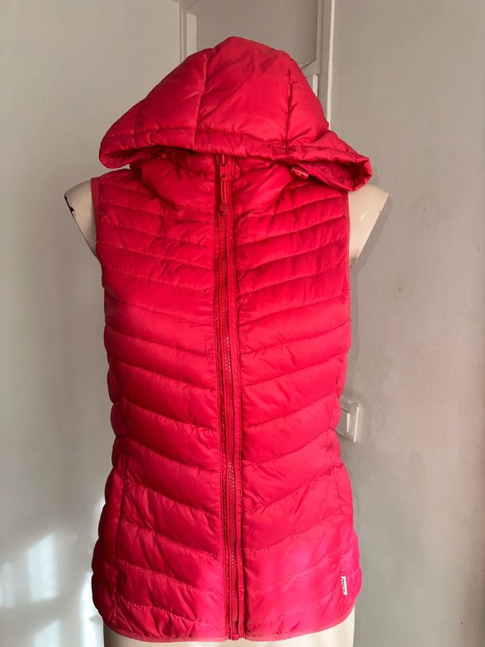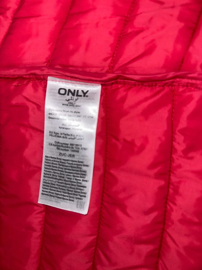 doudoune coupée sans manches avec capuche pour femmes taille S. Couleur rouge marque Only