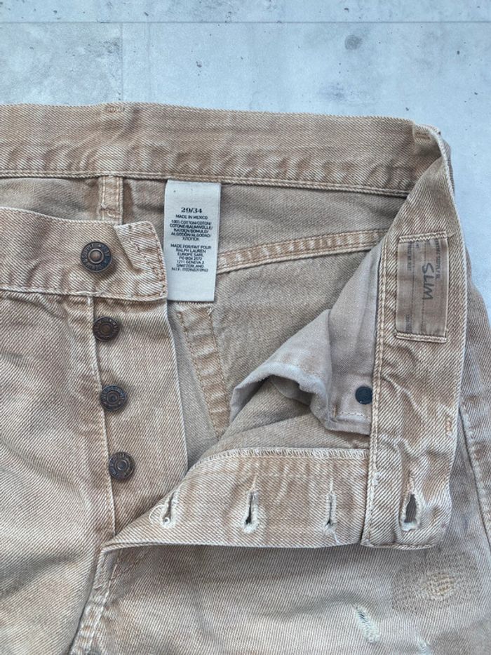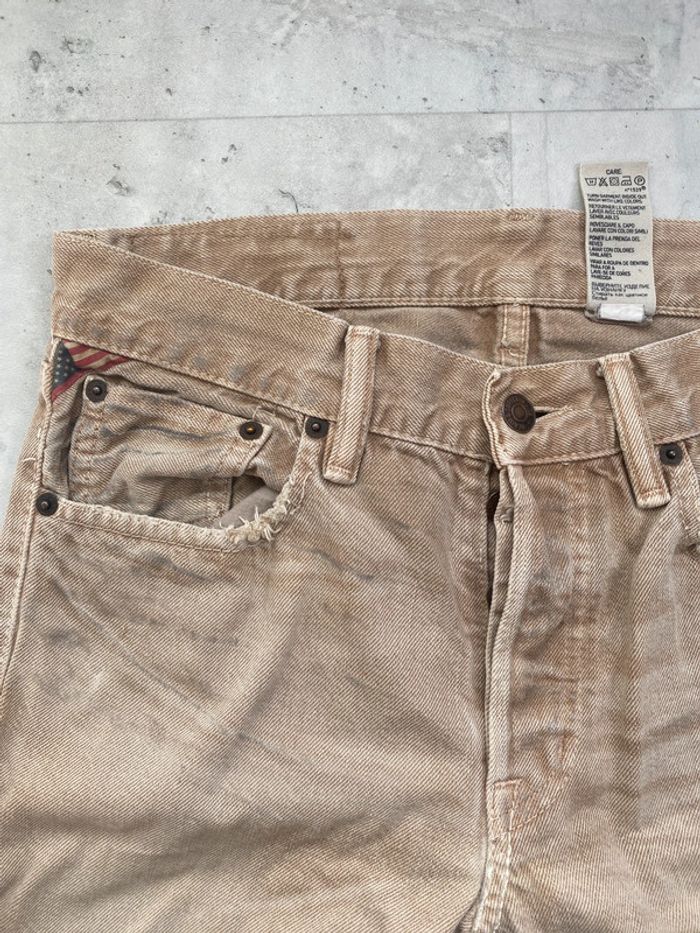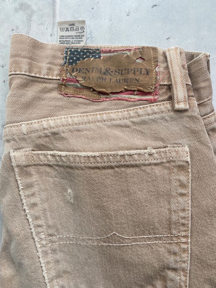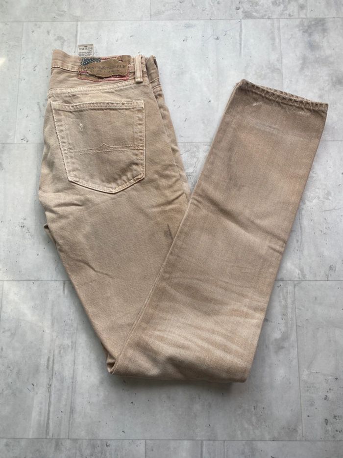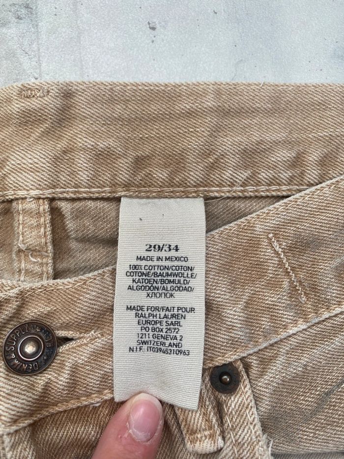 Jeans Ralph Lauren beige Taille US 29 Taille 40 cm Longueur 110 cm Effet traces noires et déchirure