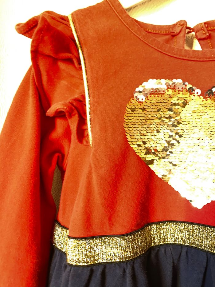 Très jolie robe confortable coeur sequins doré 2-3 ans 98 cm - photo numéro 8