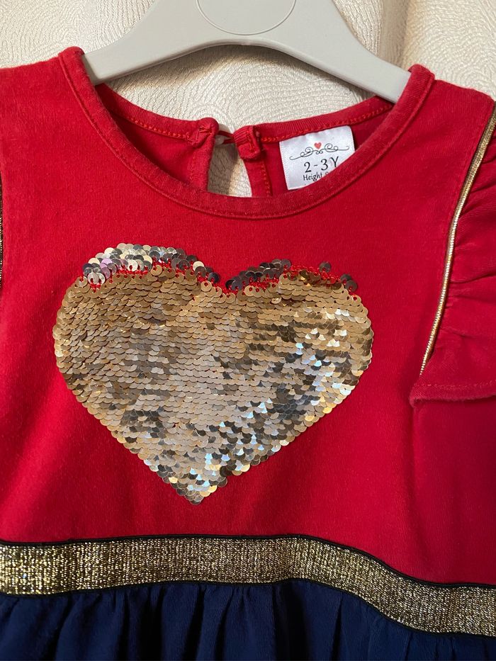 Très jolie robe confortable coeur sequins doré 2-3 ans 98 cm - photo numéro 1