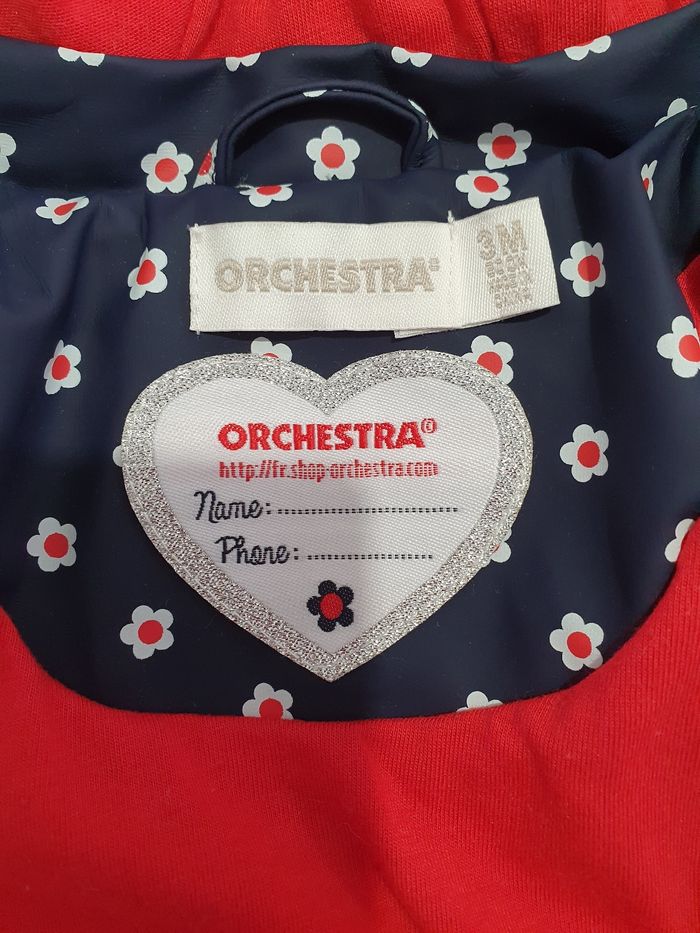 Manteau orchestra Fermeture éclair, capuche amovible Taille 3 mois , parfait état, jamais porté