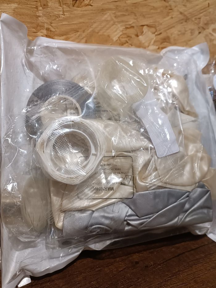 NEUF! Un ballon 4 Un ballon 1 2 murs de fond ficelles Ballons argentés et dorés Petits ballons blancs, dorés et argentés Grand ballons gris et transparents avec des paillettes dedans. Differentes tailles et couleurs de ficelles