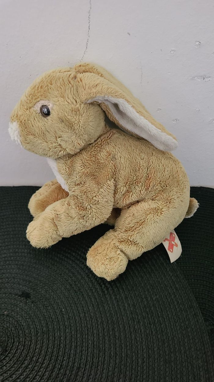doudou lapin lievre assis beige blanc nicotoy vintage - photo numéro 5
