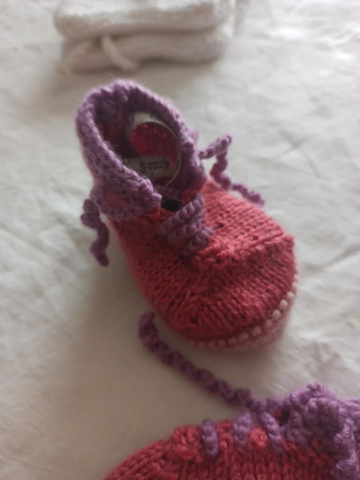 En laine pour finir la tenue de bébé et garder les pieds au chaud #depuisetf_accessoiresbébé #depuisetf_3mois #depuisetf_6mois #depuisetf_9mois
