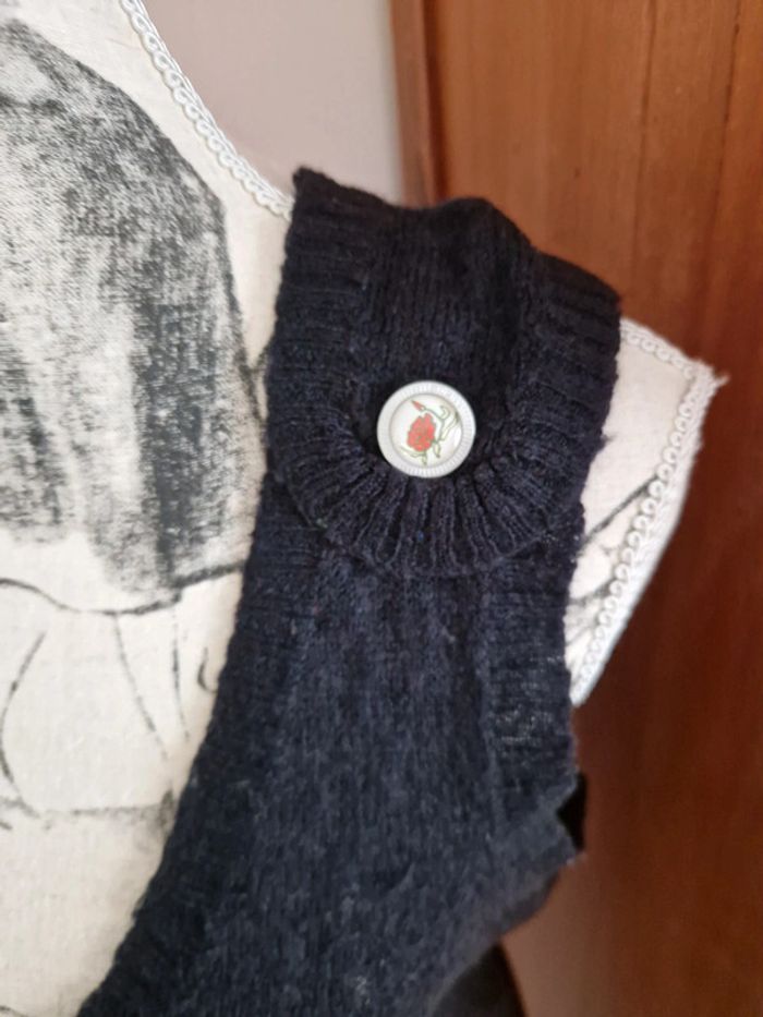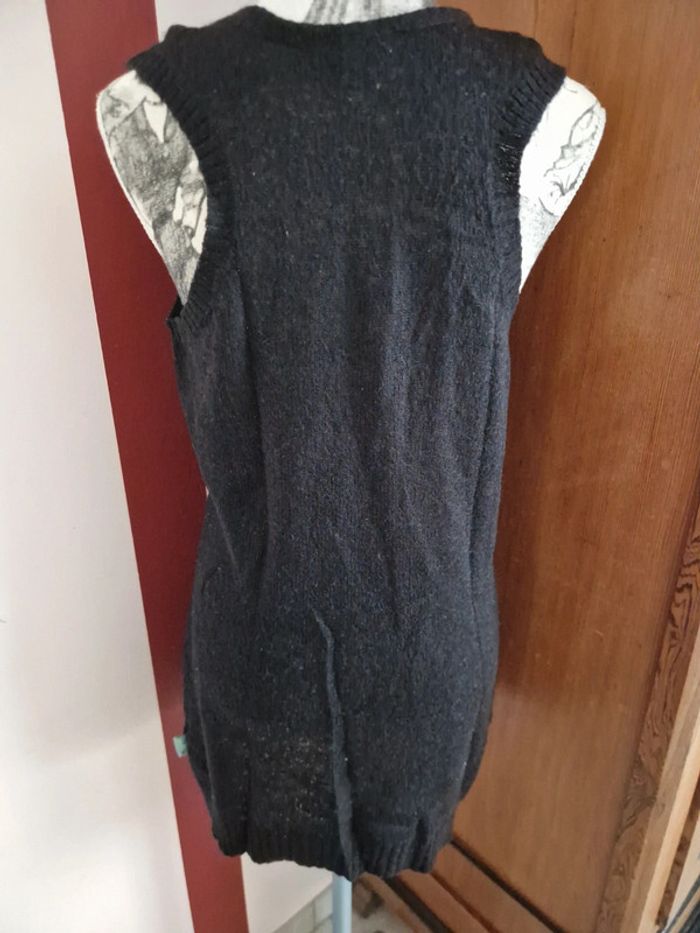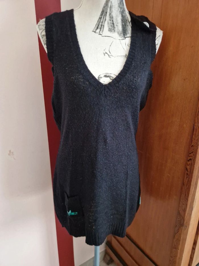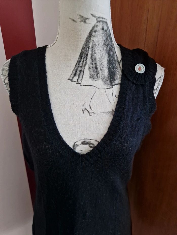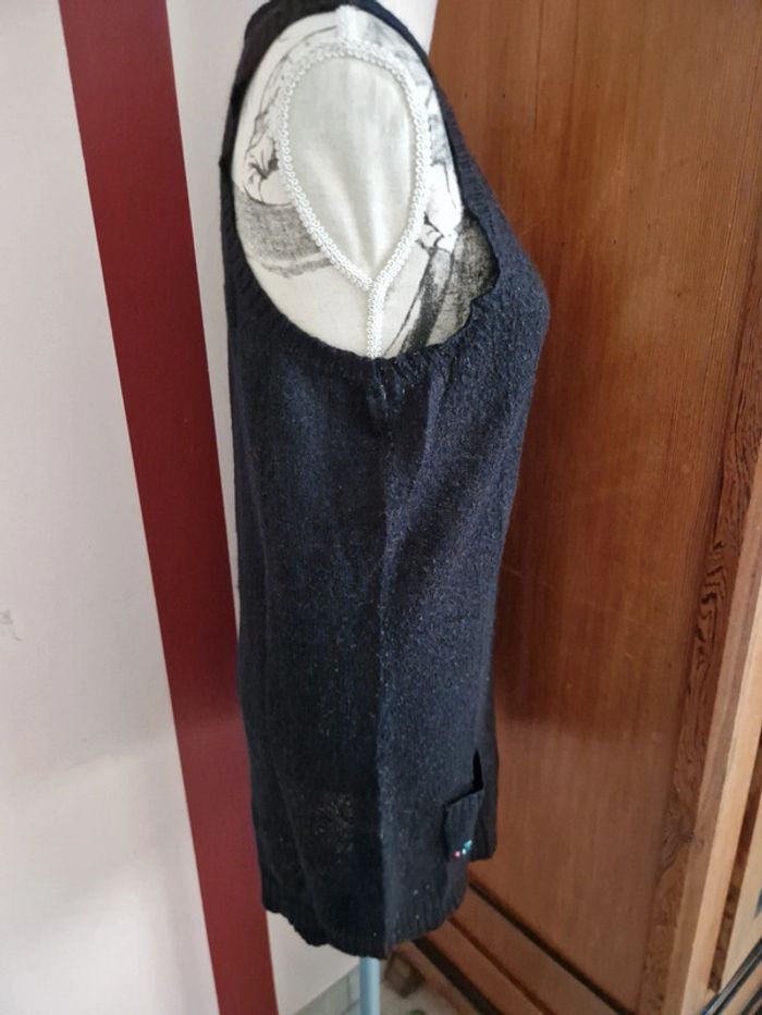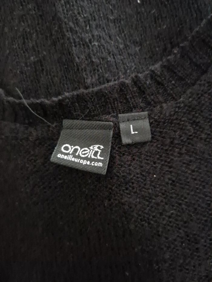 Tunique débardeur noir, avec une toute petite poche, 1 bouton décoratif sur l'épaule gauche, encolure en V, taille L, de la marque O'neill, en bon état avec quelques marques d'usure Mesure aisselles : 45 cm