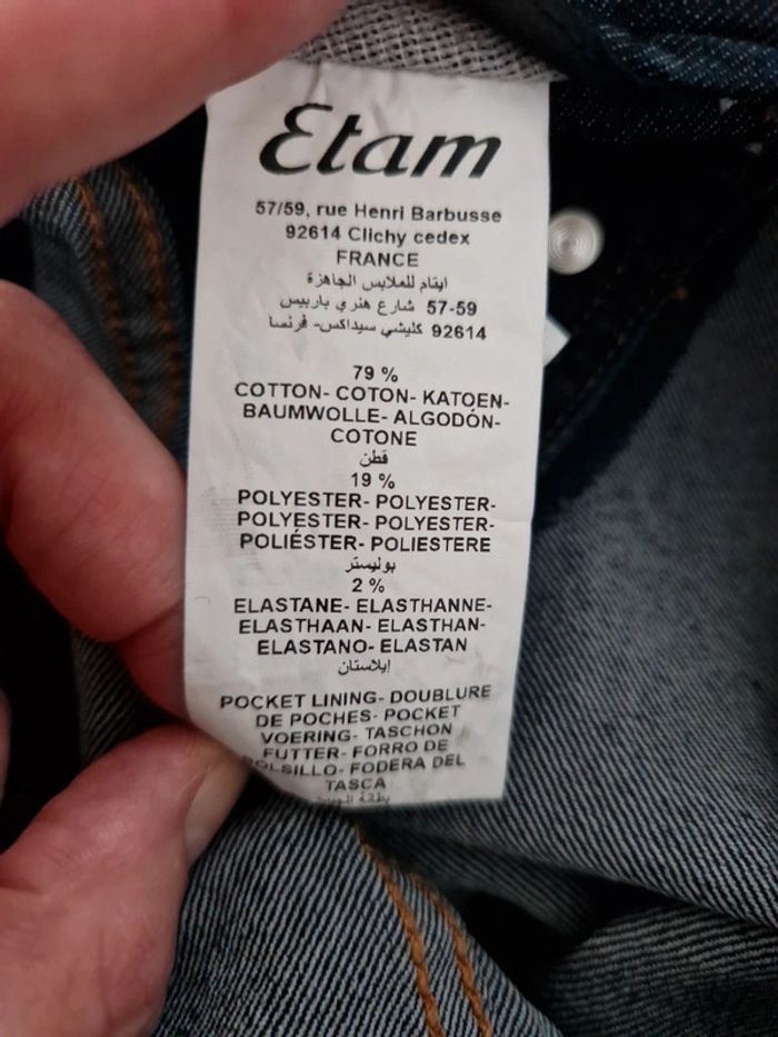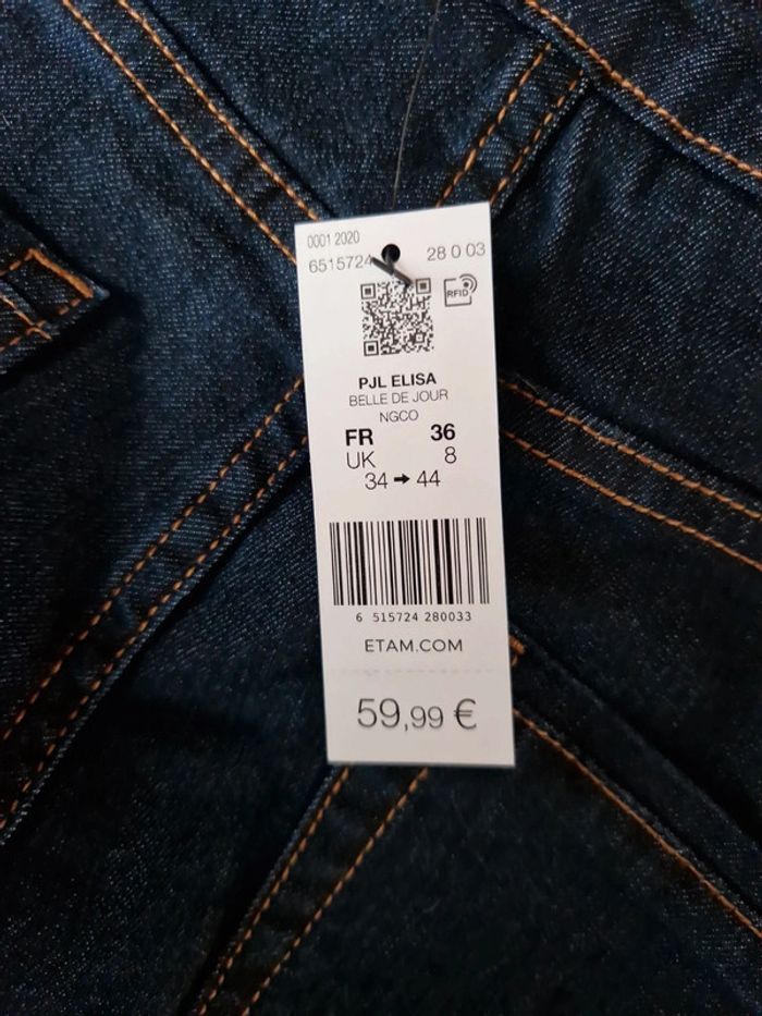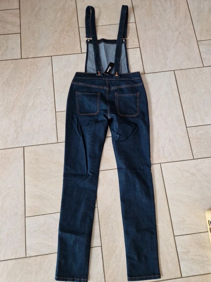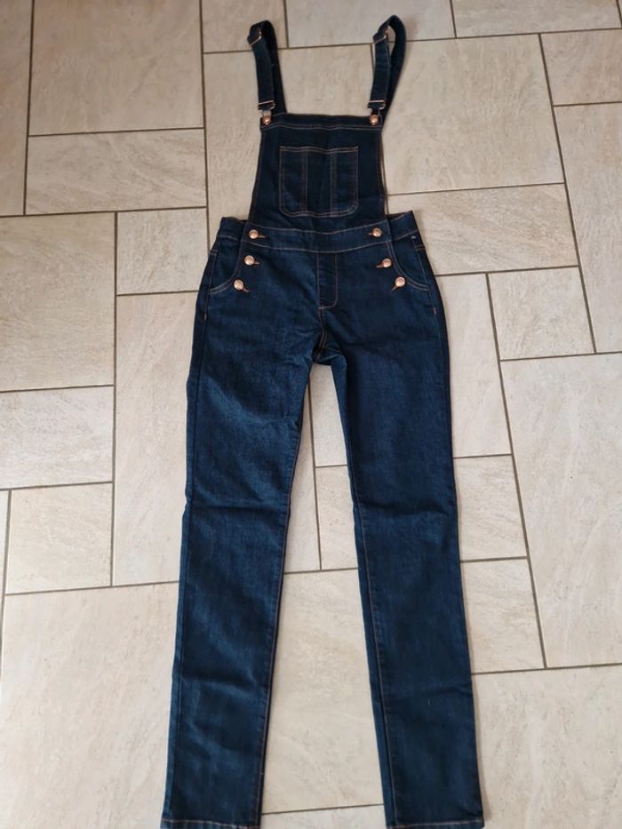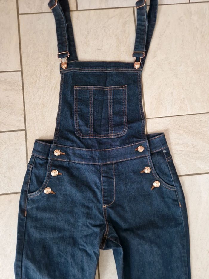 Salopette en jeans bleu foncé, 2 poches arrière, 1 poche ventrale, boutons dorés, taille 36, de la marque Etam, neuve avec étiquette Achetée 59,99€
