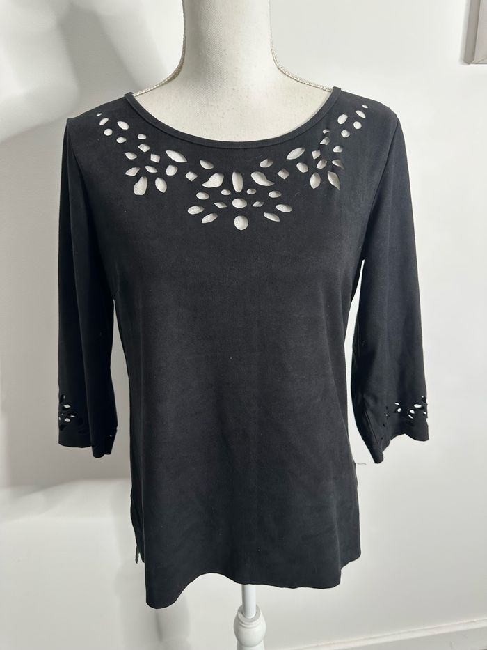 Blouse ajourée noire en suédine T38 M - photo numéro 1