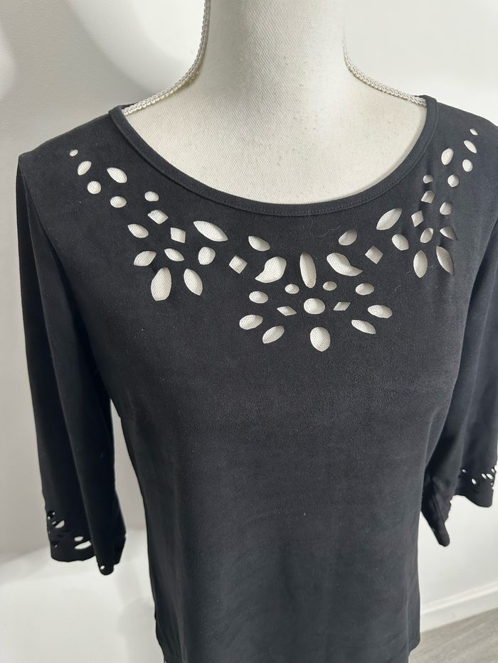 Blouse ajourée noire en suédine T38 M - photo numéro 2