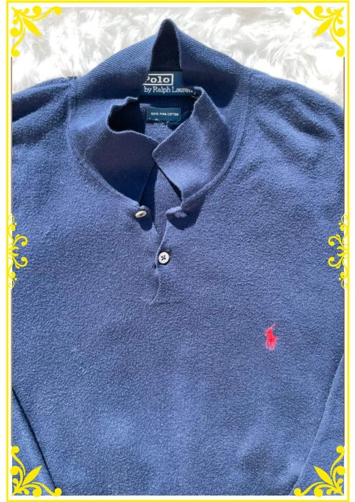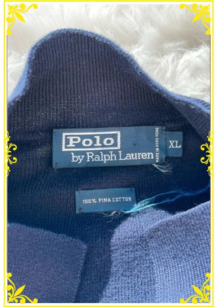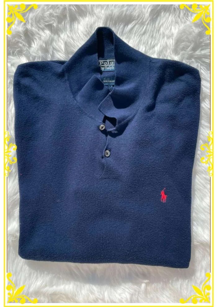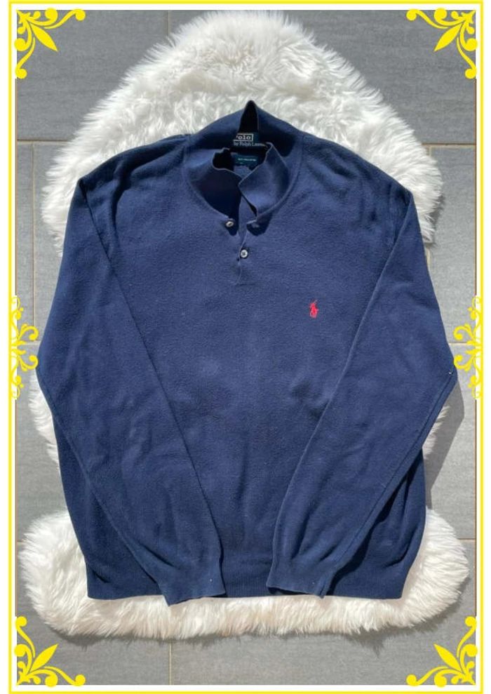 Pull Col V Ralph Lauren Bleu Marine |XL| Cavalier Rouge