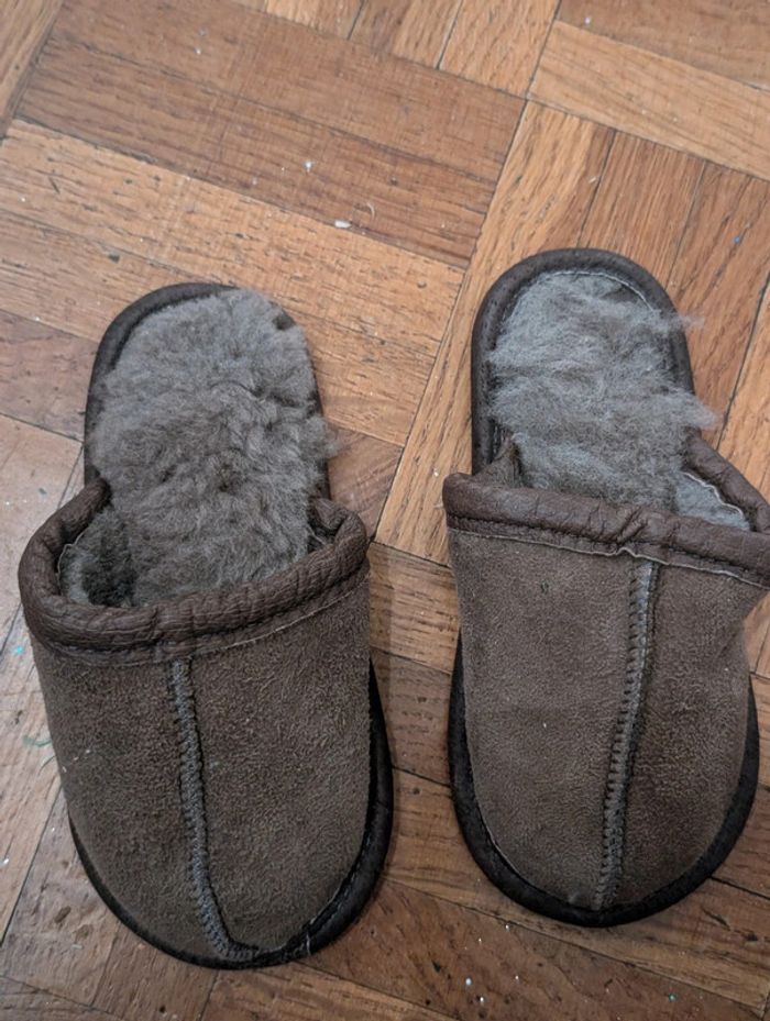 Pantoufles chocolat marron cuir fourrure pointure 22 Neuf mais fourrure s'est un peu enlevé car les pantoufles ont été mal stocké Mixte parfait pour fille et garçon #yipin_chaussures