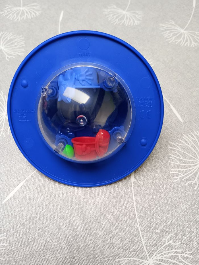 Boule Sonic de 12 cm de diamètre. Il faut réussir à mettre le diamant vert dans les paniers. Très bon état.