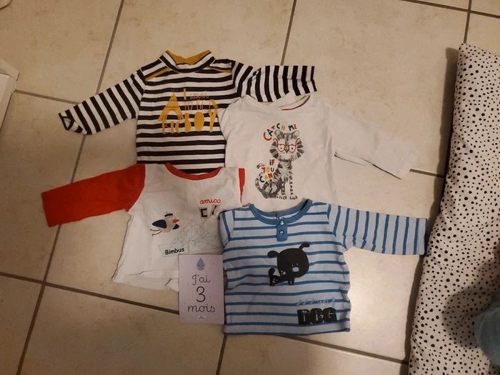 Lot de 4 tee-shirt manches longues en 3 mois - photo numéro 1