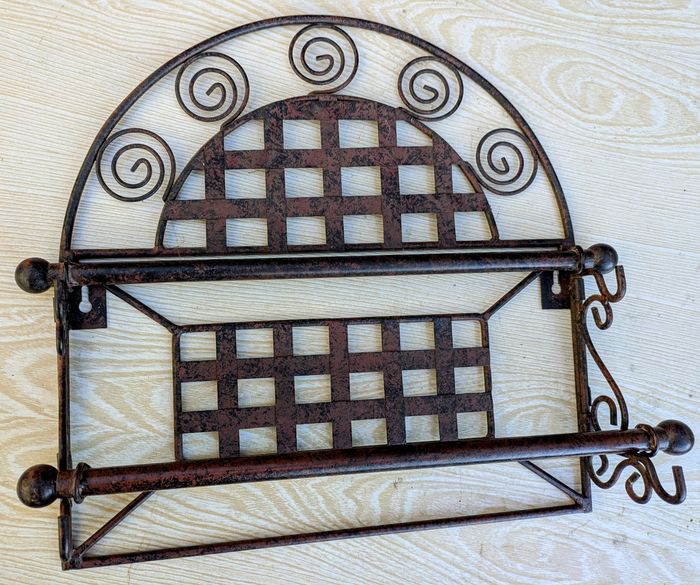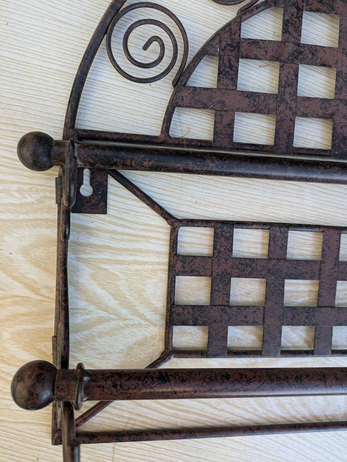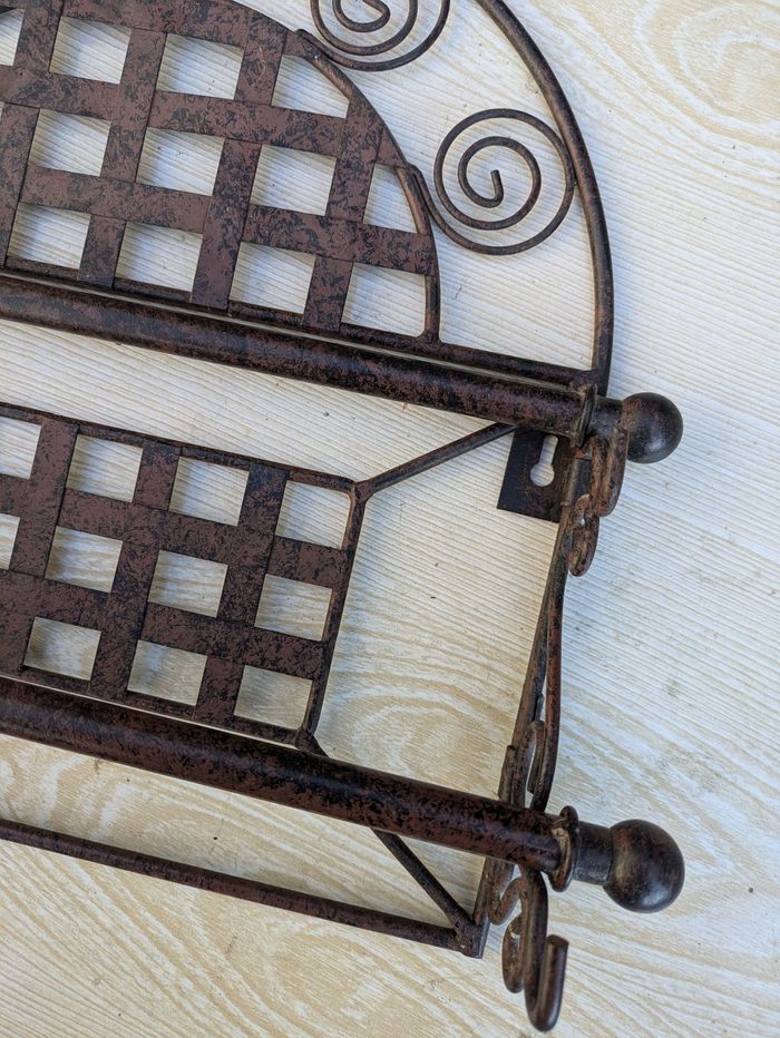 Porte sopalin en meto forge en bon état général avec 2 support Longueur : 36cm Largeur: 36cm