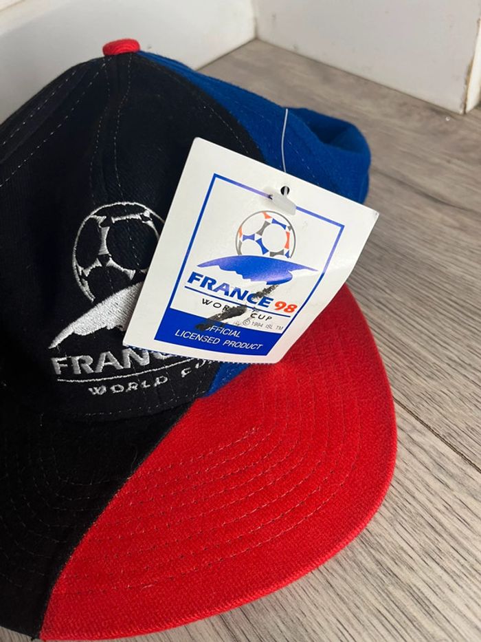 Bonjour à tous Casquette vintage France 98 Neuf avec étiquette Les broderies sont impeccable Malgré l’âge Réglable sur l’arrière Très jolie Très jolie casquette de supporter pour la coupe du monde 98 #figo #adidas #zidane #beckham #benzema #modric #marcelo #ronaldo #sergioramos #raul #realmadrid Madrid #barcelone #xavi #rivaldo #iniesta #robben #lahm #lewandowski9 #ronaldinho #henry #puyol5 #arsenalfc #robinvanpersie persie #giroud9 #fabregas #gallas #milanac #pirlo21 #maldini3 #seedorf #kaka #nesta #inter #adriano #zanetti #lautaromartinez Martinez #lukaku9 #manchesterunited United #pogba6 #rooney10 #ibrahimovic #giggs11 #scholes #vanistelrooy #carrick #liverpoolfc #salah11 #gerrard8 #torres9 #manchestercity #aguero #kevindebruyne #haaland9 #mahrez26 #psg #neymarjr #mbappé #messi #verrattipsg #silva #angeldimaria Maria #pauleta9 #chelsea #kante #lampard #drogba11 #terry #ashleycole #tottenhamhotspur #harrykane #maglia #camiseta #trikot #equipedefrance de France. #bresilien #portugal #argentinefoot #italie #allemagnefoot #espagne #angleterrefootball #vinicuisjr #om #alexis #marseille #pauleta #juninho #cris #vintage #streetwear #vintage90 #vintage80 #streetwearman #inkedstreet #retrovintage #fringuesvintage #felpavintage #styleurbain #football #foot # soccer #calcio #voetbol #vintage #maglia #maillot #camiseta #jersey #camisa #camisola de #vintagefootball #collector #colegao #coleccion #collezione #collection #footballshirt #Vareuse #retro #shirt #trikot #futbol #futebol #