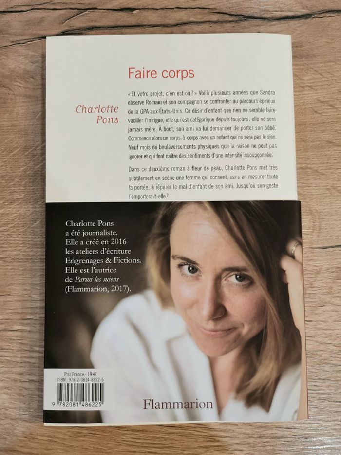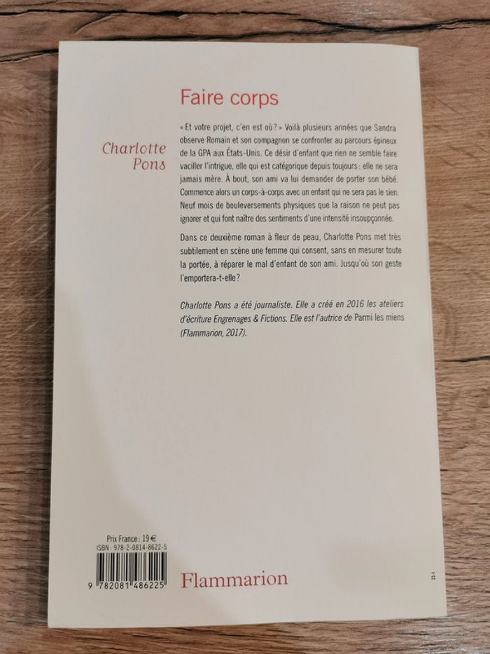 Faire corps Autrice : Charlotte Pons Editions Flammarion Roman sur le thème mère porteuse Livre broché, couverture souple Format 13.5 x 21 cm Lors de la lecture utilisation de marque-page. Pas de page cornée, ni d'annotations. Très bon état. Prix neuf 19€ " Et votre projet, c'en est où ? " Voilà plusieurs années que Sandra observe Romain et son compagnon se confronter au parcours épineux de la GPA aux Etats-Unis. Ce désir d'enfant que rien ne semble faire vaciller l'intrigue, elle qui est catégorique depuis toujours : elle ne sera jamais mère. A bout, son ami va lui demander de porter son bébé. Commence alors un corps-à-corps avec un enfant qui ne sera pas le sien. Neuf mois de bouleversements physiques que la raison ne peut pas ignorer et qui font naître des sentiments d'une intensité insoupçonnée. Dans ce deuxième roman à fleur de peau, Charlotte Pons met très subtilement en scène une femme qui consent, sans en mesurer toute la portée, à réparer le mal d'enfant de son ami. Jusqu'où son geste l'emportera-t-elle ? #roman #livrebroché #charlottepons #mèreporteuse #gpa #deuxpapas #homoparentalité #mar-taylivre
