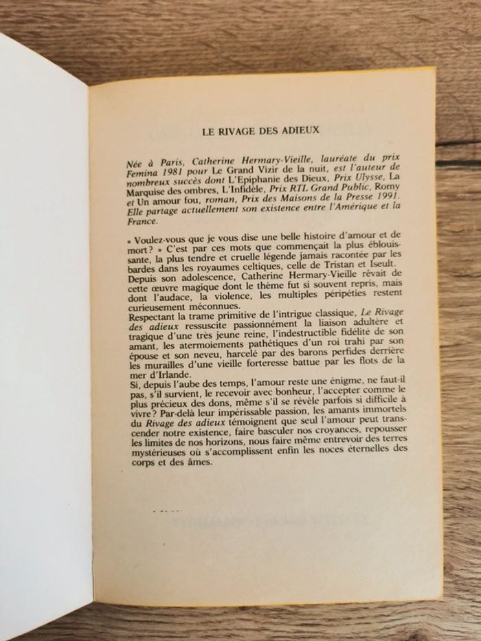 Le rivage des adieux Autrice : Catherine Hermany-Vieille Livre de poche Le mythe de Tristan et Iseult adapté à la sensibilité d'aujourd'hui... Très bon état, pas de pages cornées ni d'annotations. #roman #histoire #tristanetiseult #catherinehermanyvieille #livredepoche #mar-taylivres