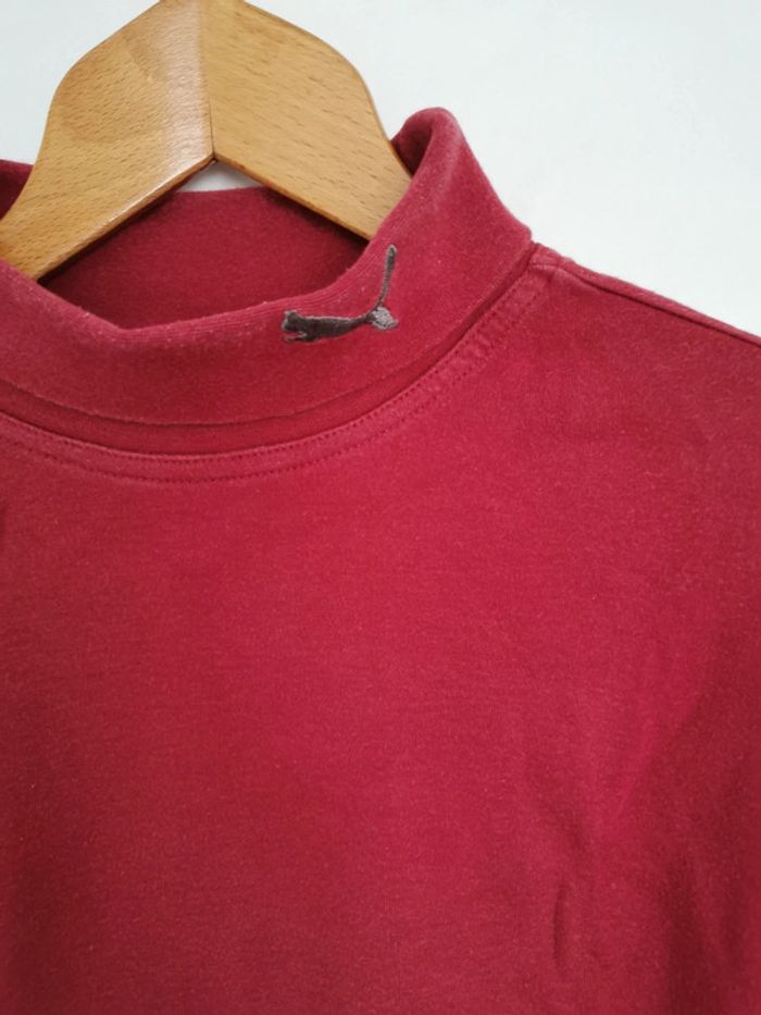 Tee-shirt manches longues rouge foncé. Col montant avec broderie logo Puma. Base droite, petit bord resserré aux manches. Porté reste en bon état, pas de trou ni de tâches. Couleur un peu irrégulière. #teeshirt #teeshirtmancheslongues #teeshirtcolroulé #rougebordeaux #rougefoncé #puma #colmontant #mar-tayenfant #mar-tayado #mar-taysport