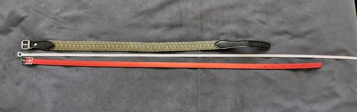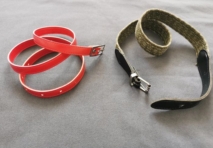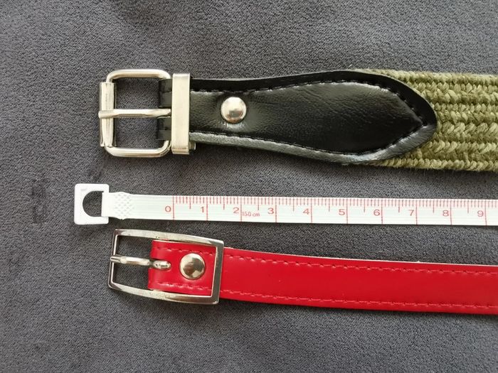 Lot de 2 ceintures : 1 cuir synthétique rouge 82 cm 1 cuir synthétique et tissu extensible kaki 68 cm Porté reste en bon état #ceinture #ceinturerouge #ceinturekaki #mar-tayaccessoires