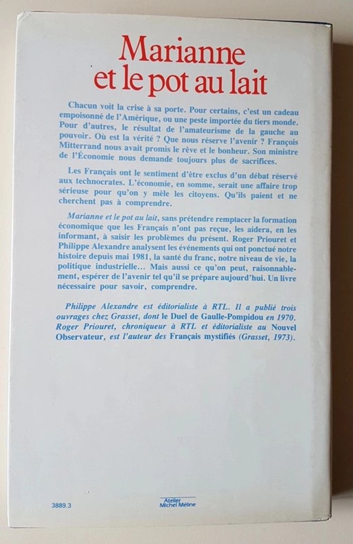 Marianne et le pot au lait Auteurs : Philippe Alexandre - Roger Priouret Couverture rigide état impeccable, jaquette globalement en très bon état, juste quelques marques sur les bords (cf photos). J'adore tous les livres, rangement soigné. Lors de la lecture utilisation de marque-page. Pas de page cornée, ni d'annotations. #économie #livrerelié #jaquette #société #livrepascher #philippealexandre #rogerpriouret #mar-taylivre