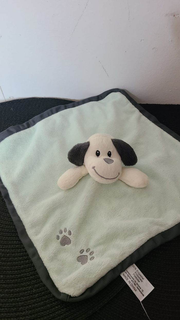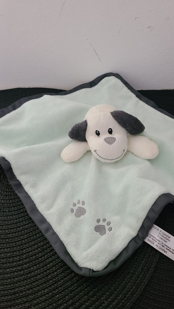 Doudou plat chien ZEEMAN gris vert bleu empreintes grelot - photo numéro 1