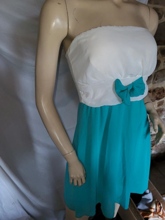 Belle robe bustier femme blanc et turquoise Doublure et rembourrage poitevine, voir photos, jamais porté, juste essayée Pour S/M Robe mariage, robe de soirée, robe cérémonie, robe été de tous les jours Plus de vêtements sur #femmesolene29690 k