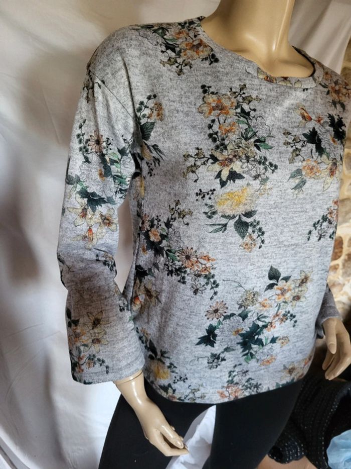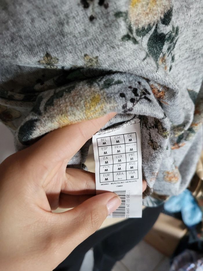 Pull gris floral promod taille M, voir détail manches Plus de vêtements sur #femmesolene29690 D