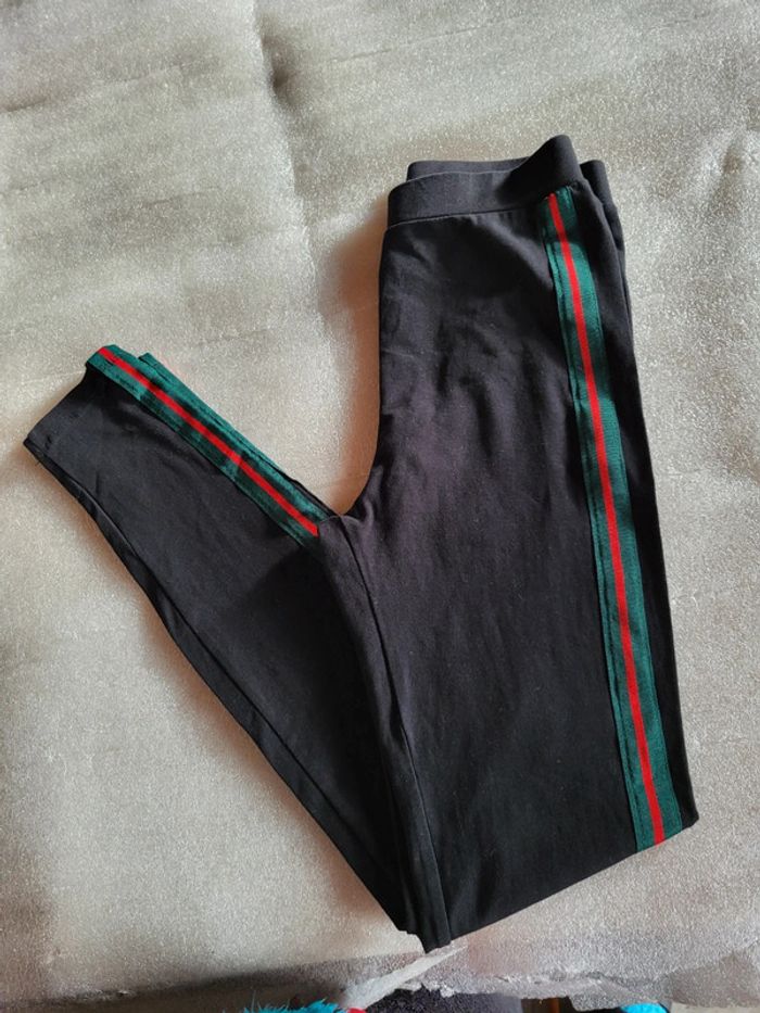 Leggings femme noir bande verte et rouge, jamais porté, étiquette taille L mais taille petit donc S 36 Plus de vêtements sur #femmesolene29690 A