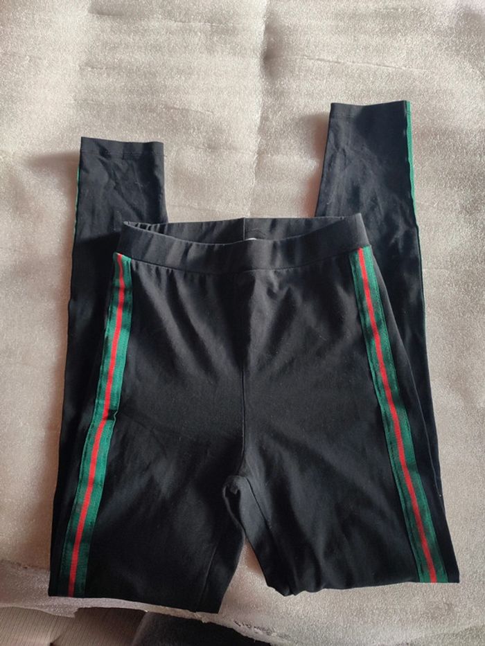 Leggings femme noir bande verte et rouge, jamais porté, étiquette taille L mais taille petit donc S 36 Plus de vêtements sur #femmesolene29690 A