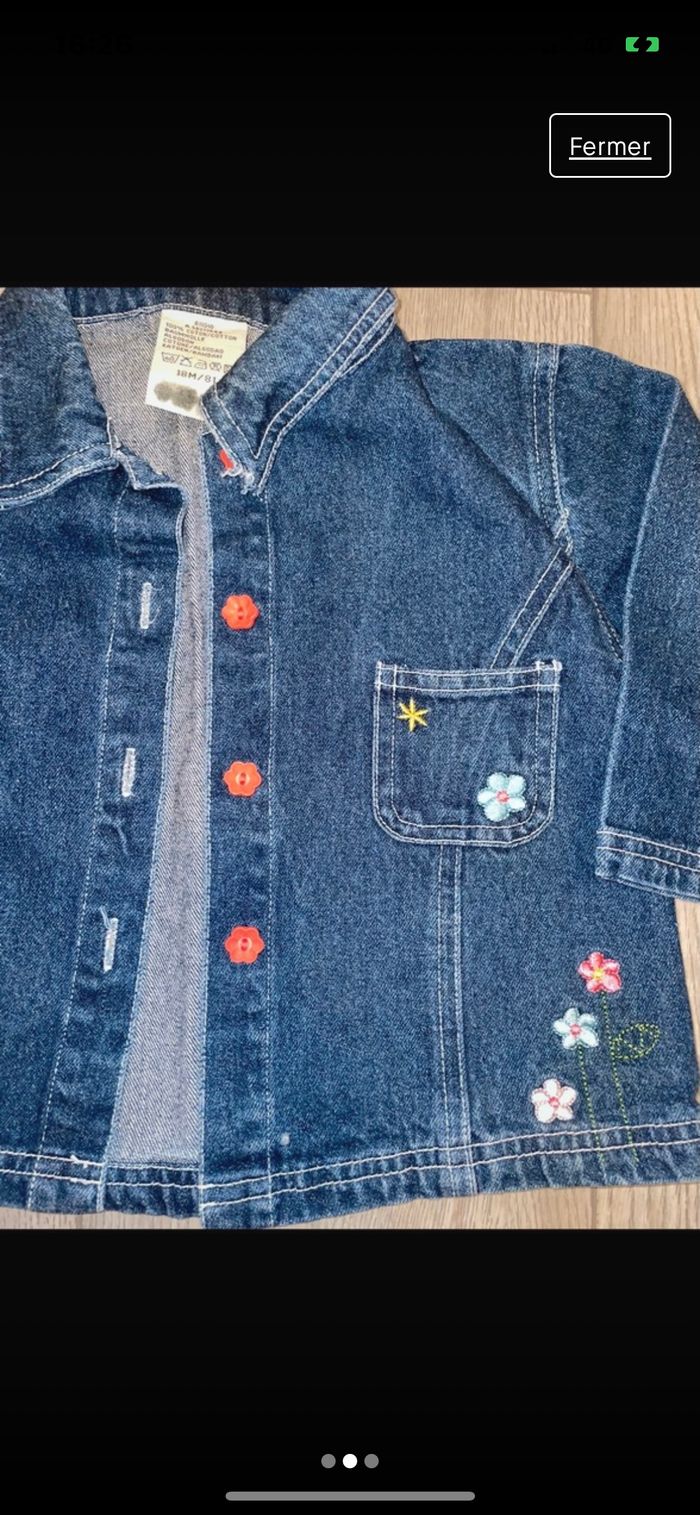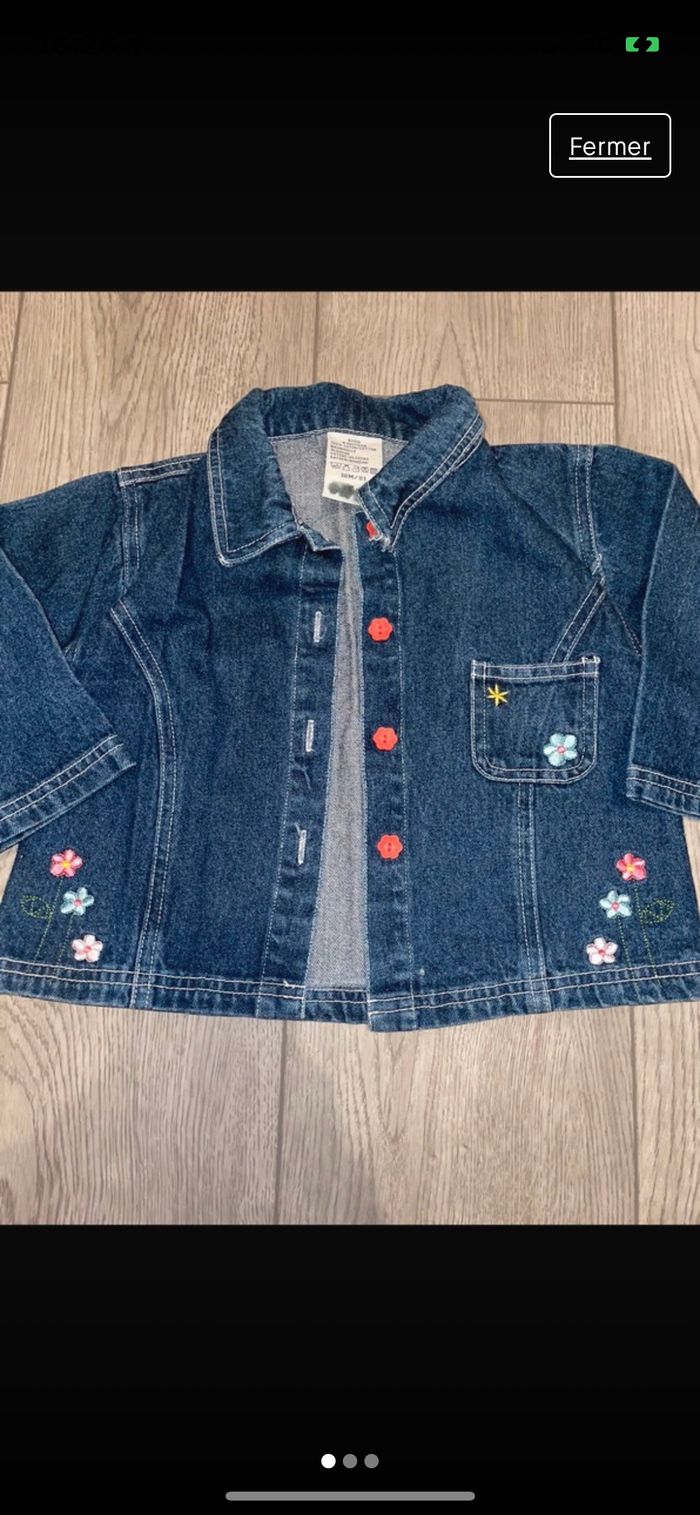 Veste en jeans avec motifs à fleurs 18 mois Peu porté mais prénom sur étiquette #nquesnelfille18mois #vesteenjean