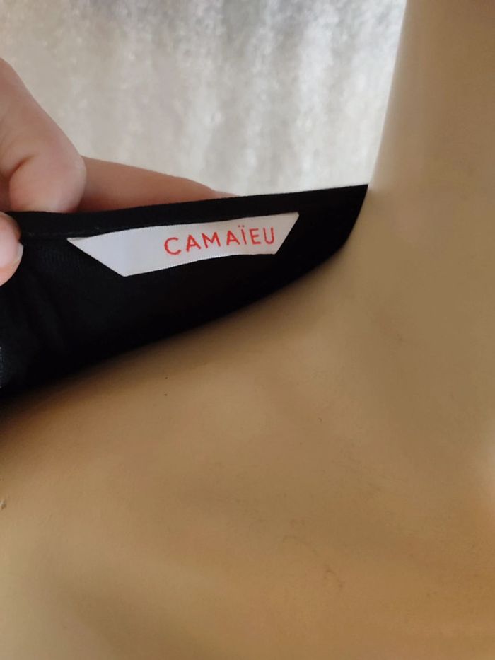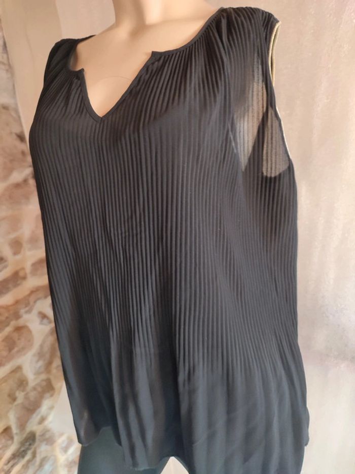 Débardeur blouse femme camaïeu noir , un débardeur en dessous accroché pour pas de transparence, finitions manches dorés Plus sur #femmesolene29690 11