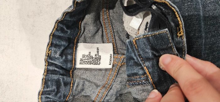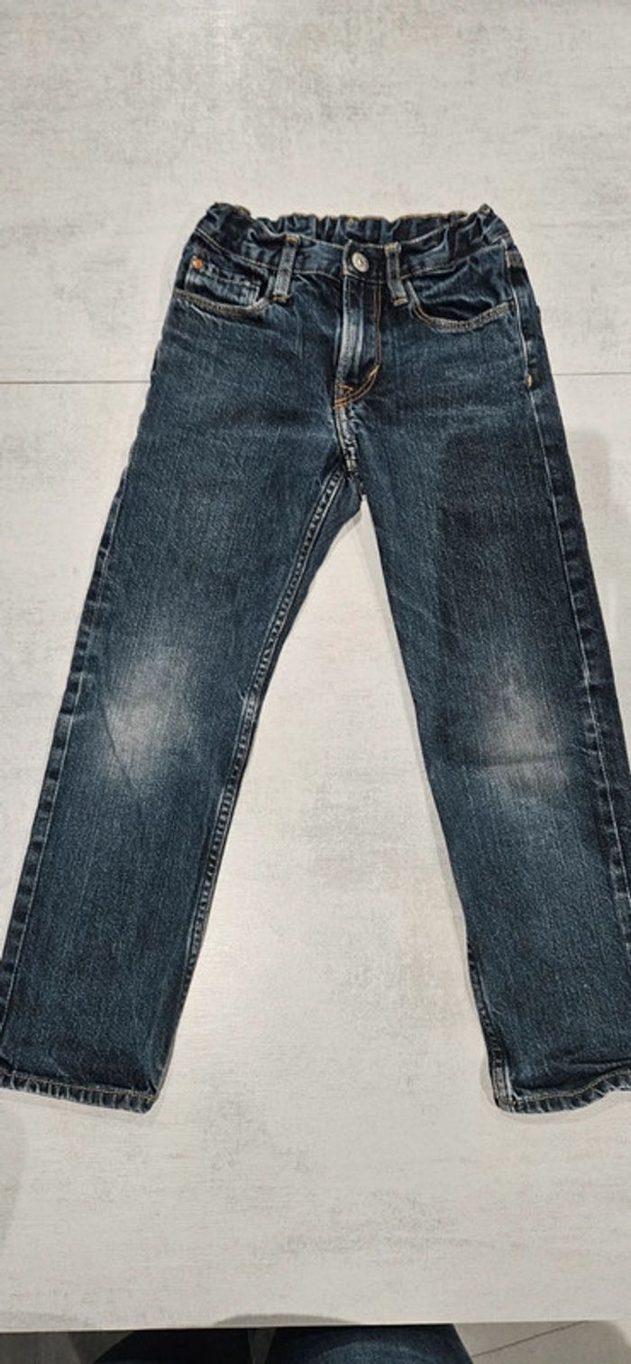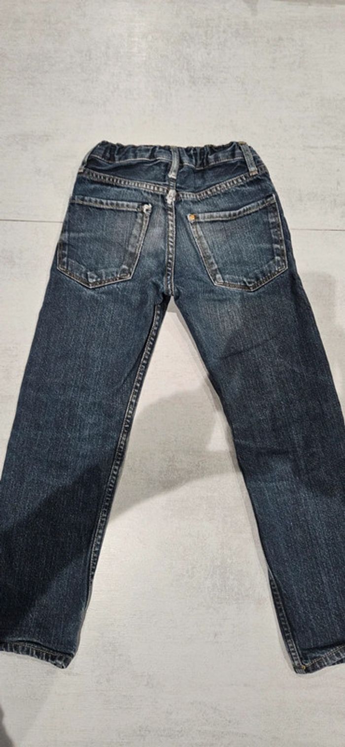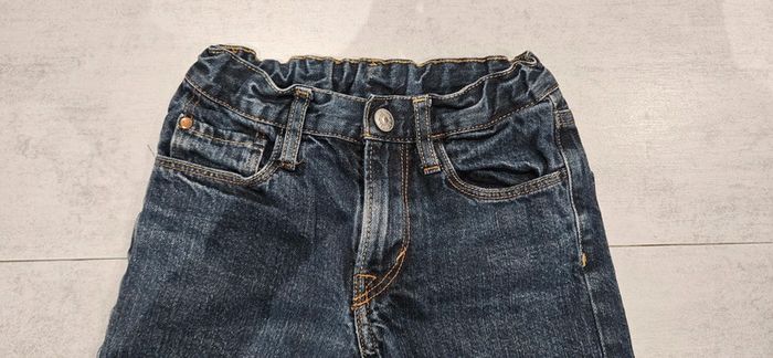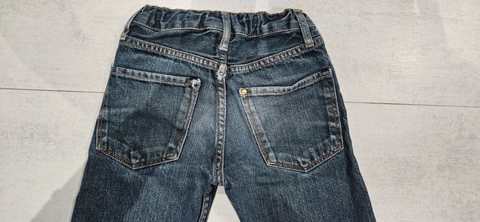 Jean simple foncé marque h&m taille 122 cm Le devant est en très bon état, pas d'accroc au genou, l'arrière au niveau des fesses est plus usé Réglable à la taille