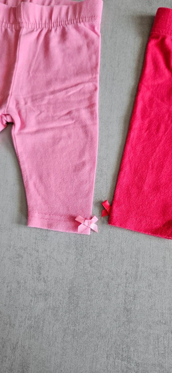 2 leggings courts rose et rose clair taille 68 cm Petits nœuds en bas A4