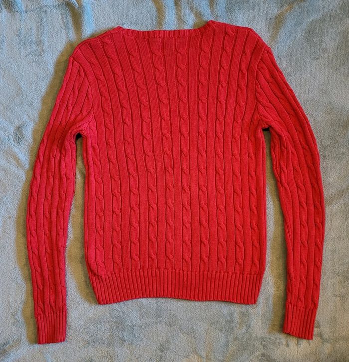 Pull Torsadé Rouge - Logo Brodé Bleu Marine 🐎  Ralph Lauren - Taille M - photo numéro 2