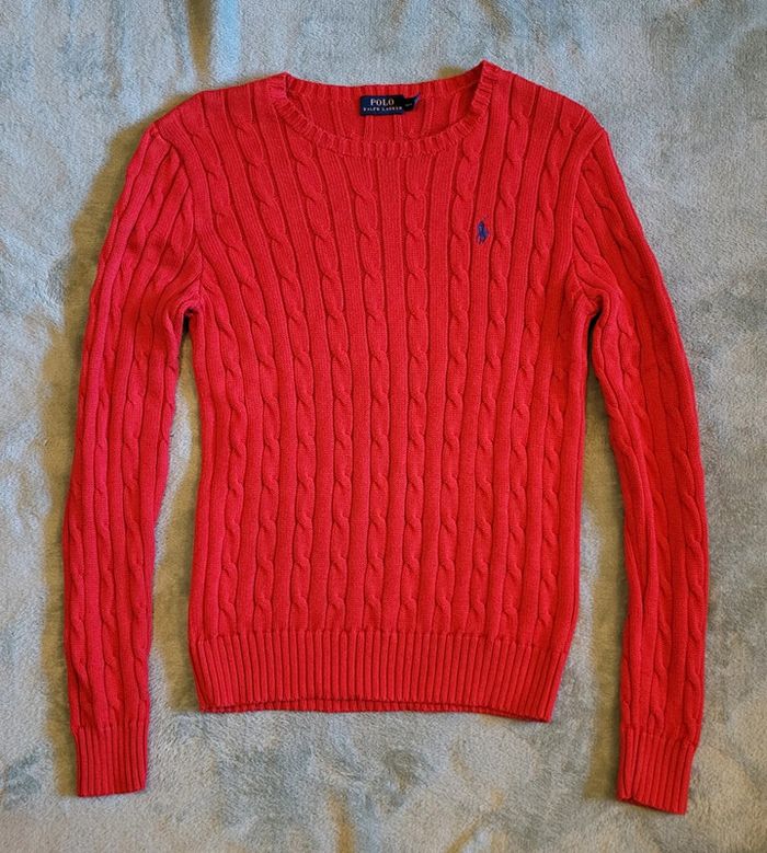 Pull Torsadé Rouge - Logo Brodé Bleu Marine 🐎  Ralph Lauren - Taille M - photo numéro 1