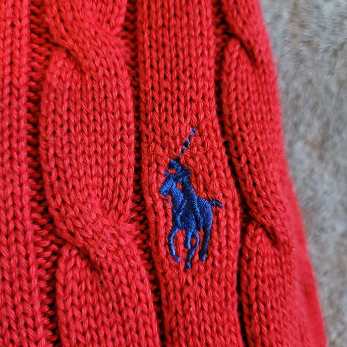 Pull Torsadé Rouge - Logo Brodé Bleu Marine 🐎  Ralph Lauren - Taille M - photo numéro 6