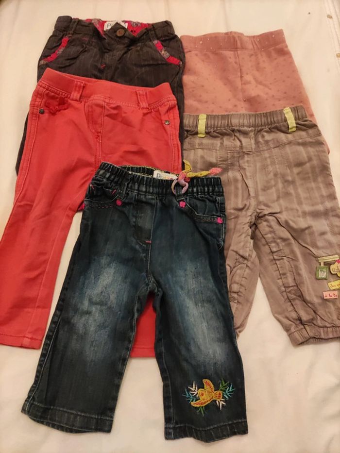 5 pantalons taille 12 mois en bon état. Différentes marques. N'hésitez pas à faire des lots les réductions s'appliquent !