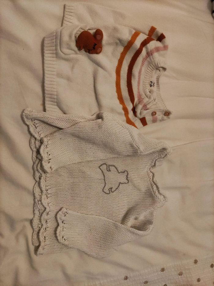 2 pull 12 mois dont un en laine en bon état. Différentes marques. N'hésitez pas à faire des lots les réductions s'appliquent !
