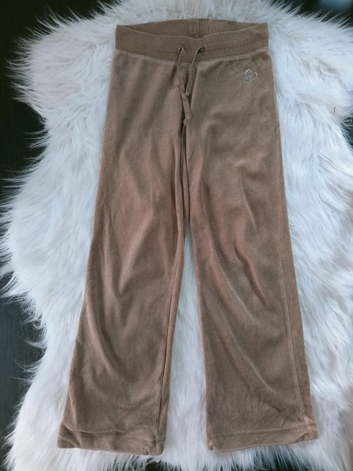 Pantalon en velours, de couleur taupe, en bon état, bouloché à l'intérieur et velours moins doux. Marque H&M. Taille 134 cm soit 8-9ans. Petits coeurs en strass sur le côté. Forme évasée. N*344. #marynline78enfant #marynline78fille8ans #marynline78fille9ans