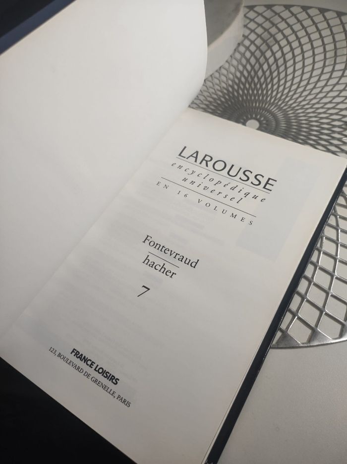 Encyclopédie universel larousse Volume 7 Lettre FGH. En 16 volume. Petit état d'usure sur la jackette et dessus des pages jaunies ( quelques unes peuvent l'être également à l'intérieur) car conditionné pendant longtemps dans une bibliothèque. Le livre a été peu ouvert.