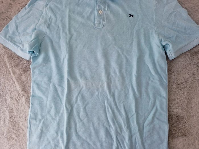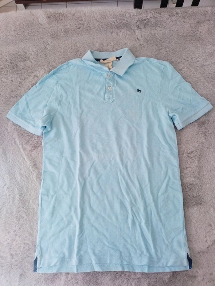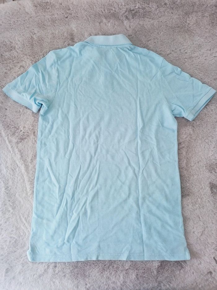 Polo en maille piquée, de couleur bleu ciel, plus joli en vrai qu'en photo car ici bleu turquoise alors que bleu ciel en vrai de taille 14 ans et +(170cm). En très bon état mais mis bon état car trace blanche légère au milieu voir photo. Concept logg de H&M. N*0654. #marynline78Garcon14ans #marynline78Garcon16ans