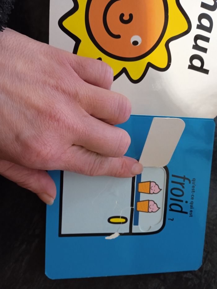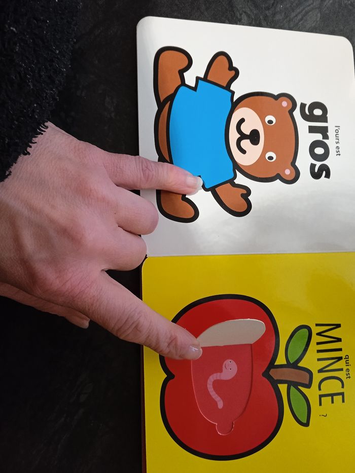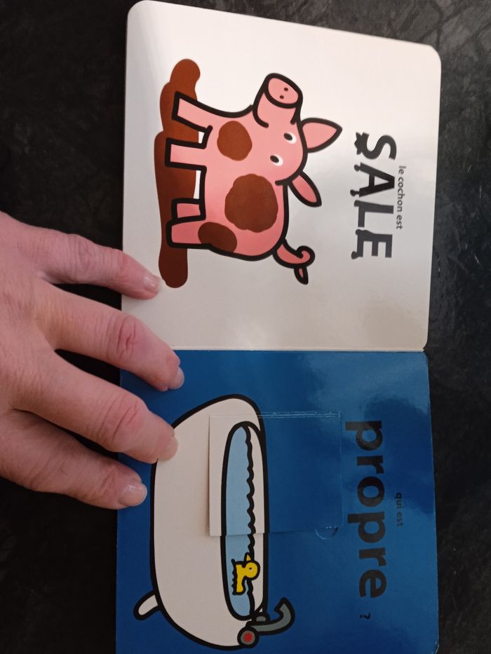 Livre à volets qui apprend les contraires. Un volet est abîmé, j ai mis du scotch. Voir photo. #livreenfantnade3033