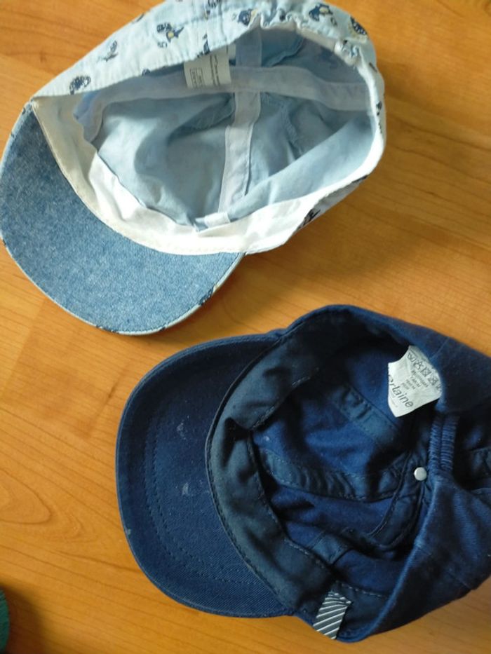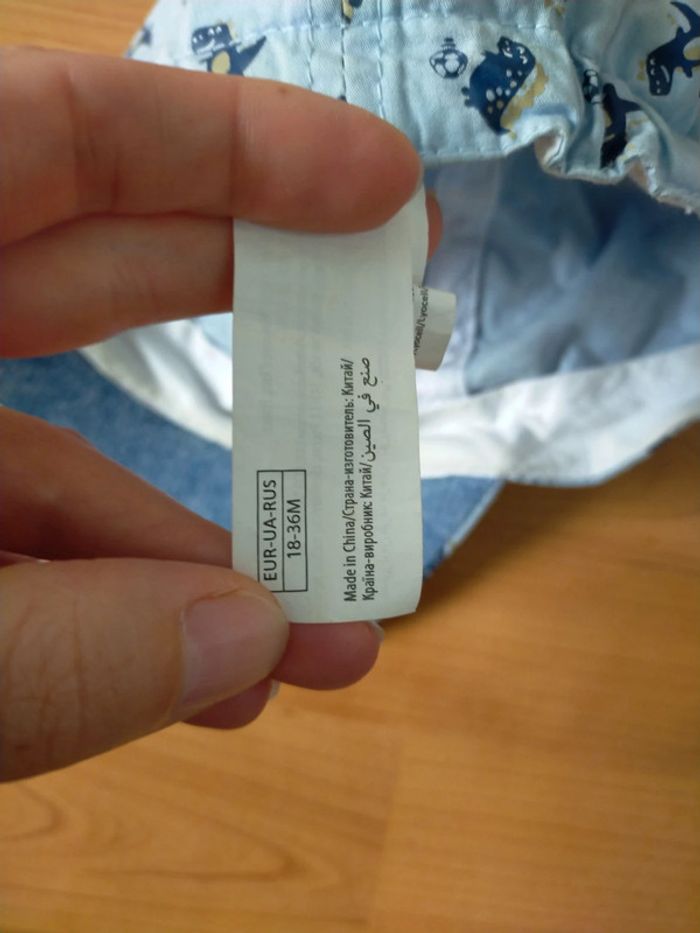 18-36 mois. Bleu clair avec dinosaures et foot. Bleue marine unie. Bon état général