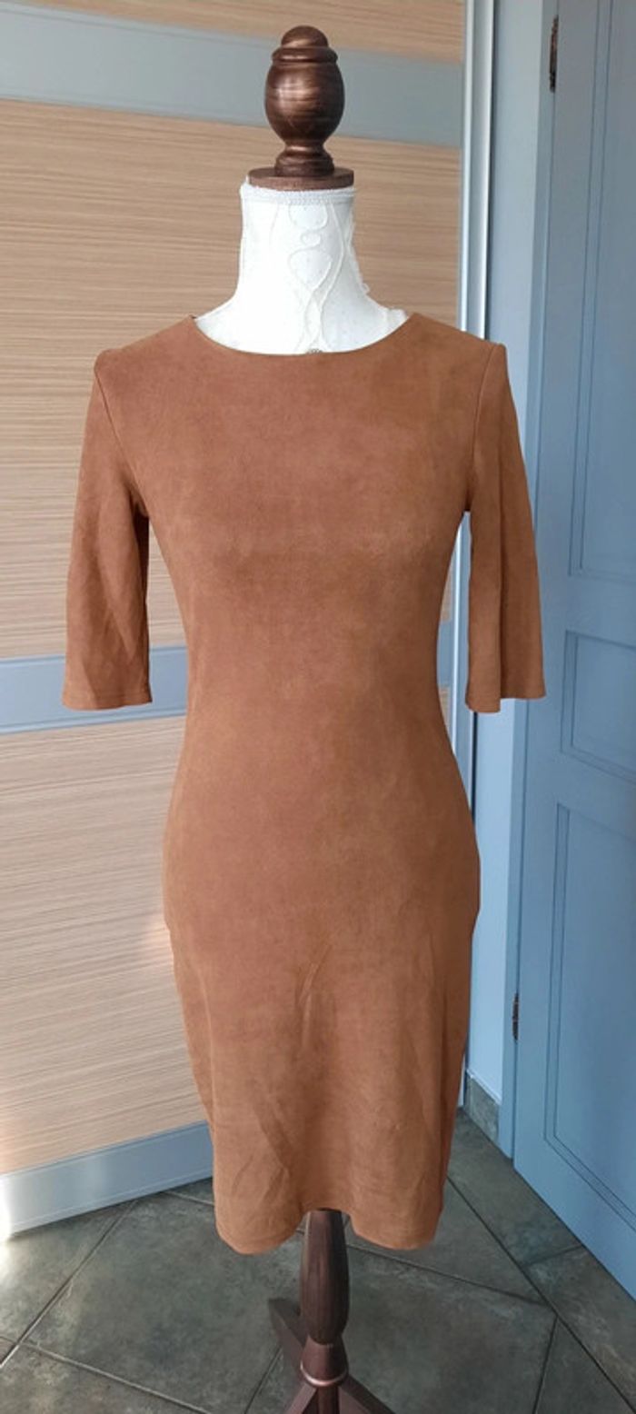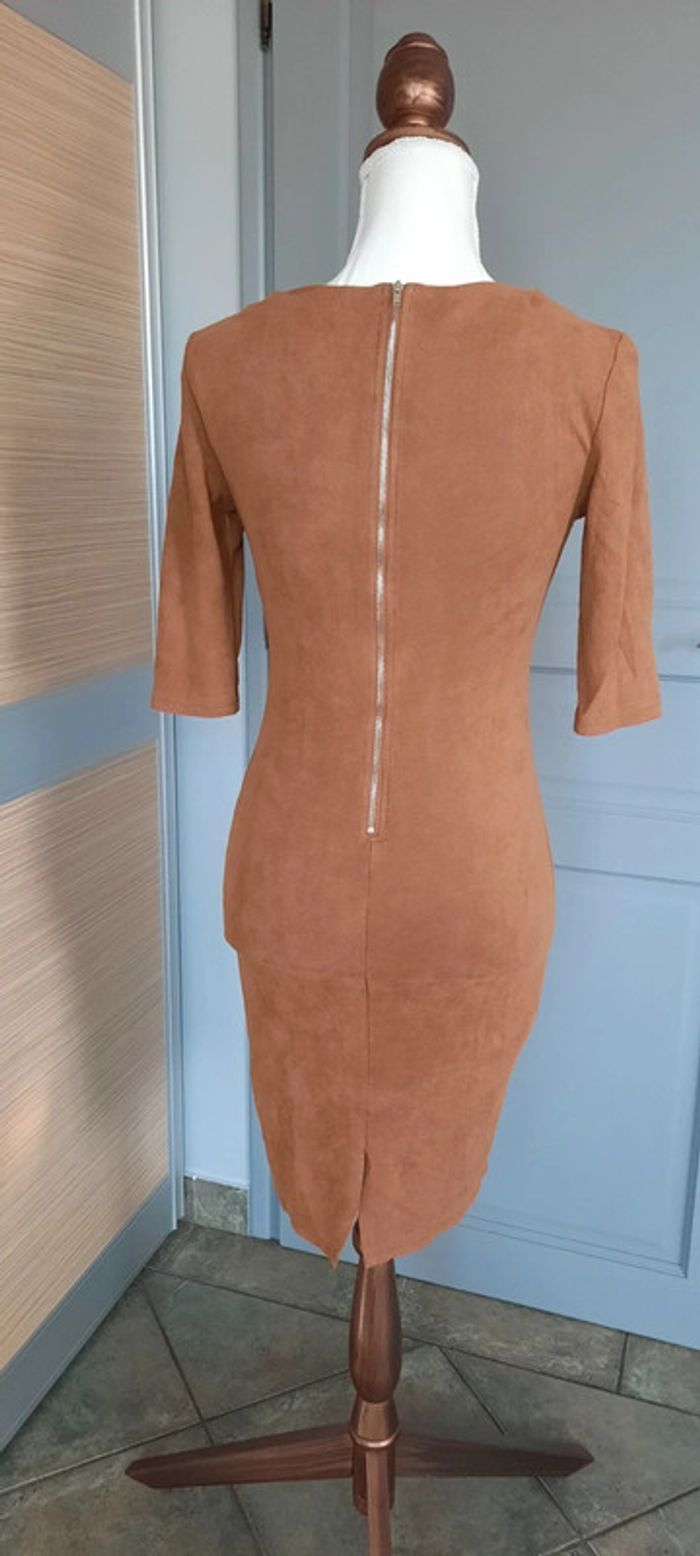 Robe taille 38 couleur Camel. Manches 3/4. Vintage Dressing. Fermeture éclair à l'arrière touché très doux. #hiverfemme38 #robe38 #robecamel38 #vintagedressing38 #evyemi #femme38evyemi