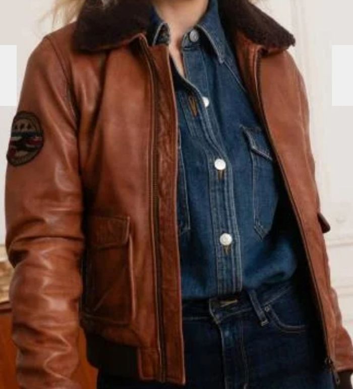 Vends veste en cuire couleur cognac ,taille xxl ,portée 2 fois