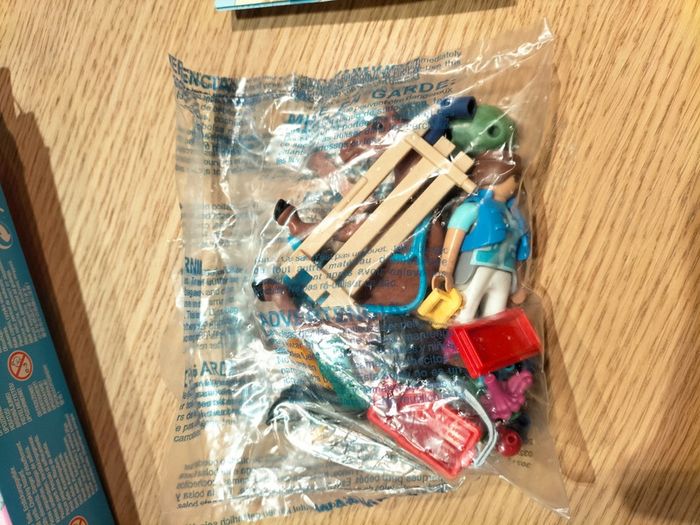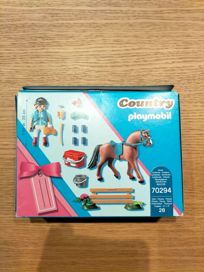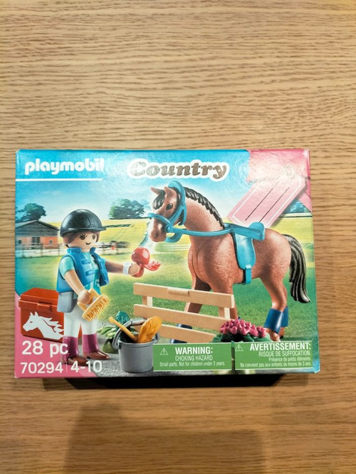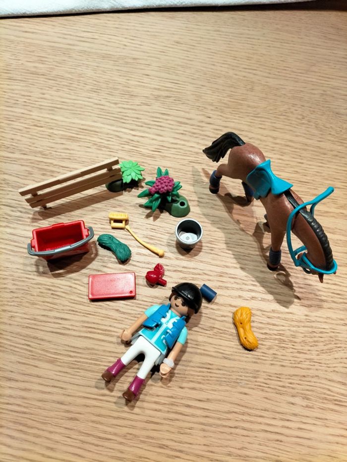Playmobil numéro 70294 - La cavalière Comprenant 27 pièces dont 1 cavalière, 1 cheval, 1 barrière et de nombreux autres accessoires... À partir de 4 ans. Ensemble en très bon état, boîte en bon état. Vérifié, quasi complet, à noter qu'il manque l'anse du seau gris pièce numéro 30 07 8910. En vente neuf, à l'heure actuelle entre 16 et 27, non livré.