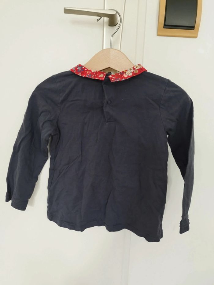 Haut gris col fantaisie motifs fleurs - photo numéro 2