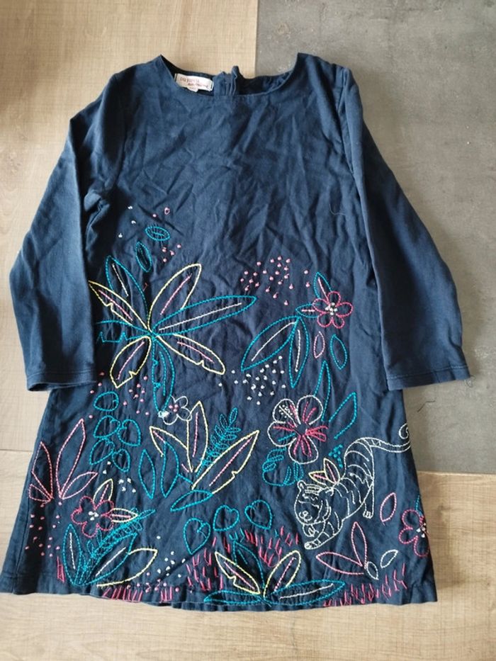 Robe bleu marine motifs brodés colorés - photo numéro 2